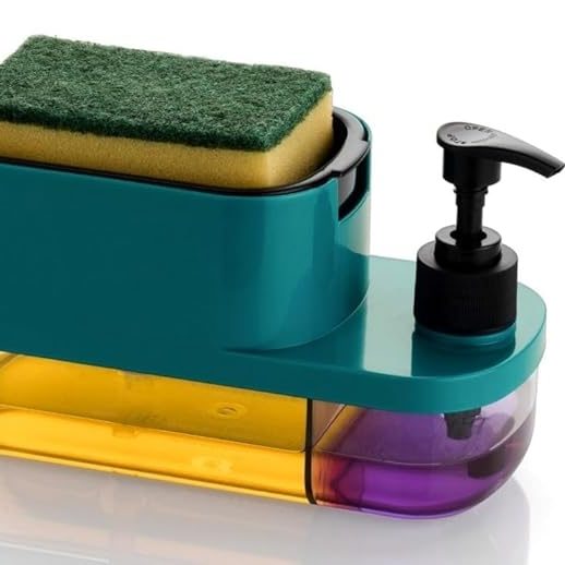 VYOOx ABS Kitchen Soap Holder with Sponge Holder, 2-Chamber Design, Pump Bottle for Dish Soap, Teal (Multi Colour)