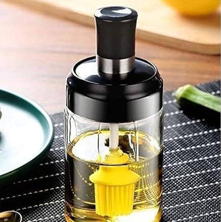LISHER 250 ml Glass Oil Dispenser With Basting Brush,Oil Ghee Containers For Kitchen Oil Brush For BBQ Pastry Grill Baking Kitchen Cooking (Pack Of 1),Green