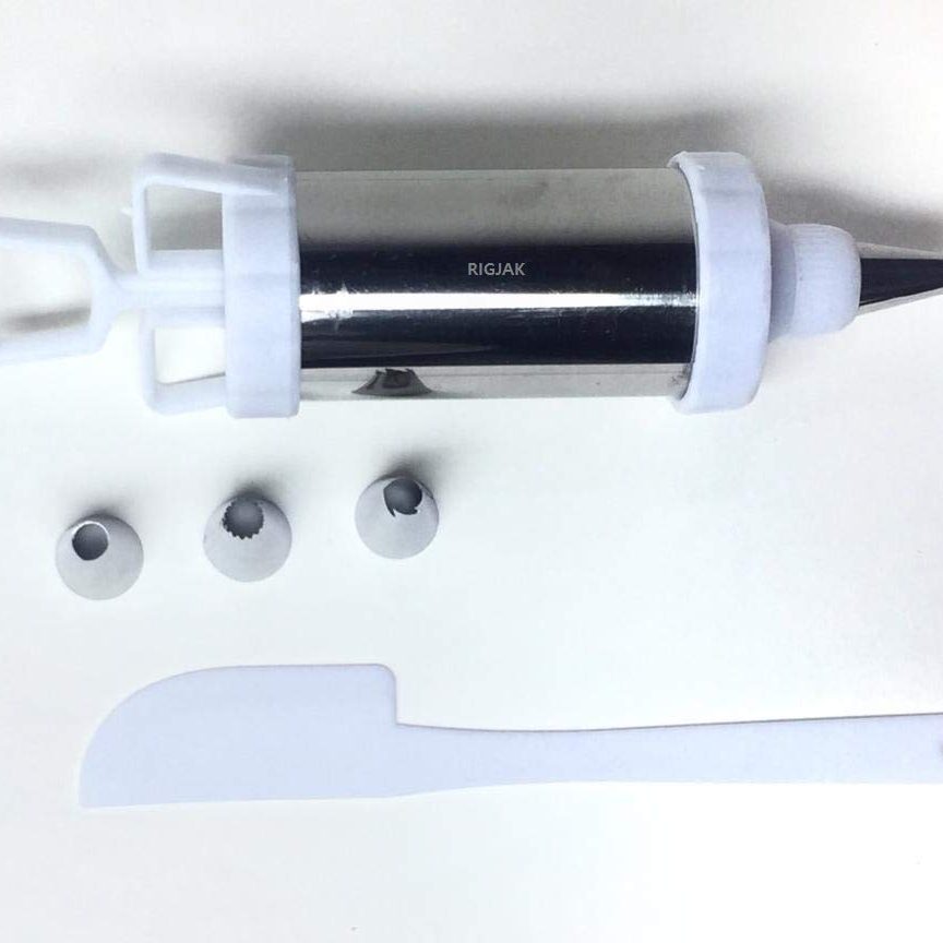 Whipped Cream Piping Bag and Nozzles Stainless Steel Cake Decoration Icing Tool, Nozzles, Pastry Icing Piping Syringe Gun Set (White)