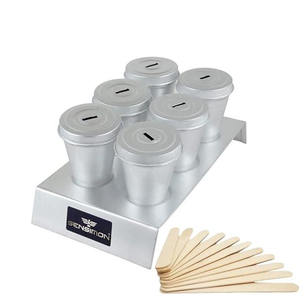 Sensimon Aluminium Reusable Kulfi Cone Mould Set of 6 with Stand & Ice Cream Sticks | DIY Kulfi & Ice Cream Maker Mold | Perfect for Homemade Kulfi, Ice Lollies & Frozen Dessert (7x5x2.5 cm) – Silver
