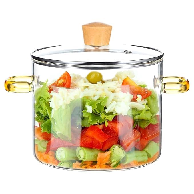VAGHASIYA ENTERPRISE 1.5L Uncoated Simmer Pots For Cooking On Stove Glass Boiling Pot Small Heat-Resistant Clear Saucepan With Lid For Pasta Soup, Baby Food, And Salad 50 ounces