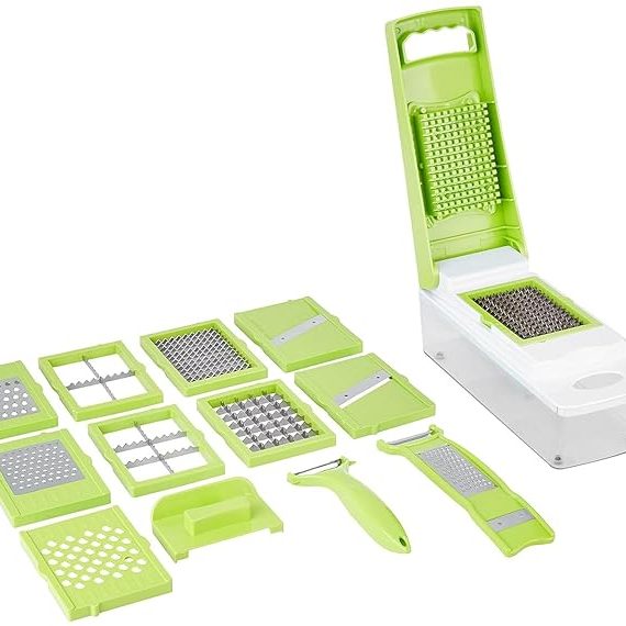 Amazon Brand – Solimo 15-in-1 Stainless Steel Chopper Vegetable and Fruit , Green