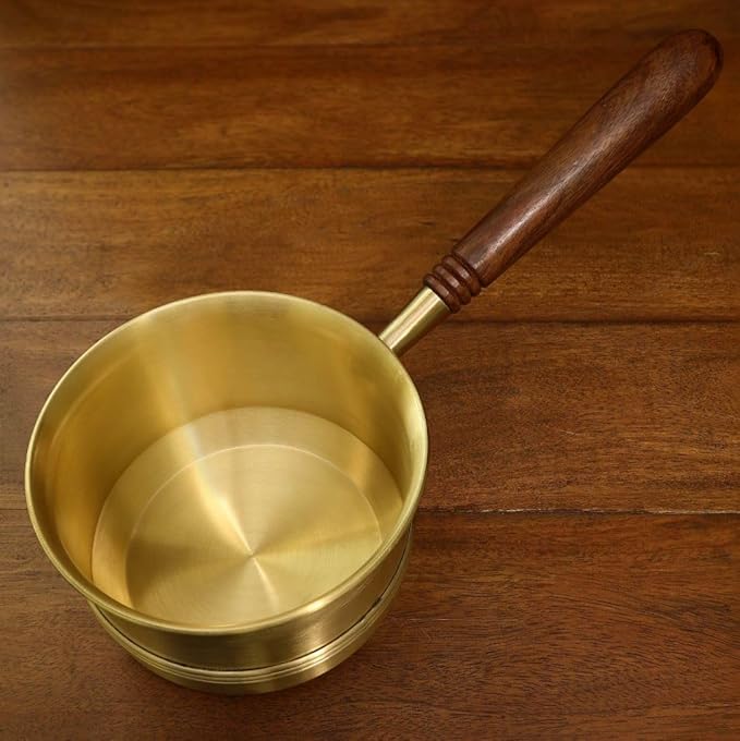 Sanatan Siddhi Brass Tea Pan with Wooden Handle – 750 ml | Induction & Gas Compatible | Milk, Tea, Saucepan Tapeli | Non-Stick Finish | Ideal Diwali Gift for Kitchen Use