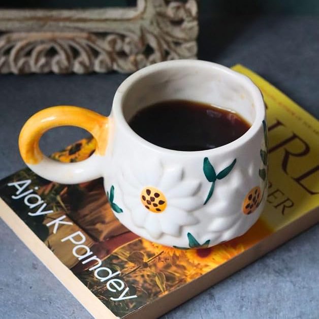 WEAVING HOMES Daisy Bloom Mug 250 ML Handmade Ceramic Mugs Gift to Best Friend Coffee/Tea/Milk/Green Tea/Cold Coffee Mugs/Cup Microwave Safe & Dishwasher Safe (Set of 1)