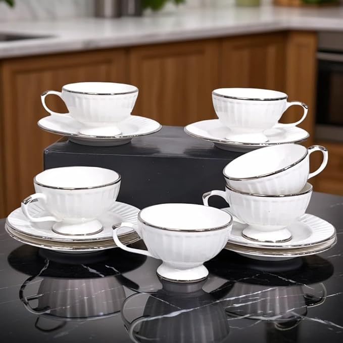 U.P.C. Ceramic Cup Set of 6 for Tea, Tea Cup Set of 6, Microwave Safe Tea Cups, Dishwasher Safe Coffee Cup Set, Elevate Your Coffee Experience-150ml