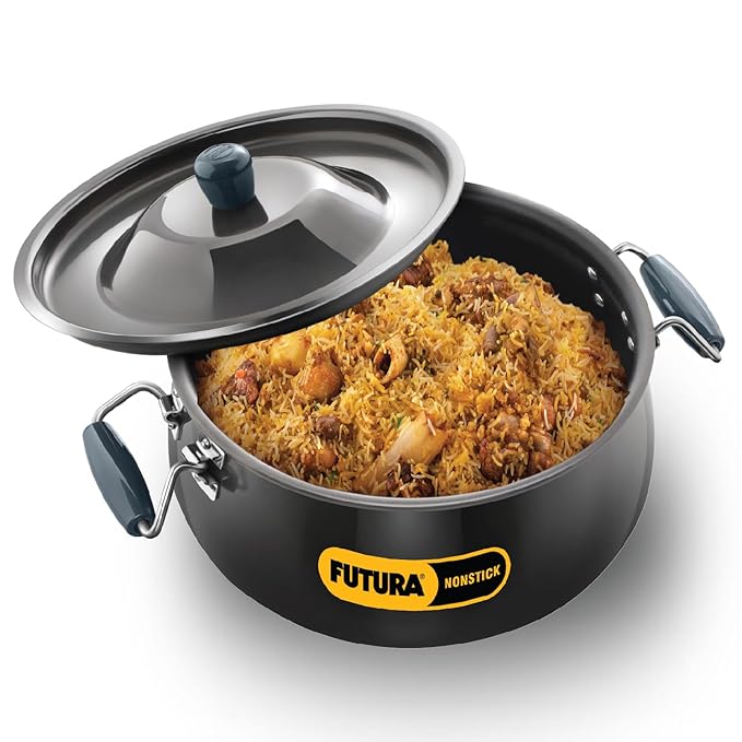 Hawkins Futura 12 Litre BigBoy Biryani Handi, Non Stick Pot with Hard Anodised Lid, Sauce Pan for Cooking and Serving Biriyani, Black (NBH12) Aluminium