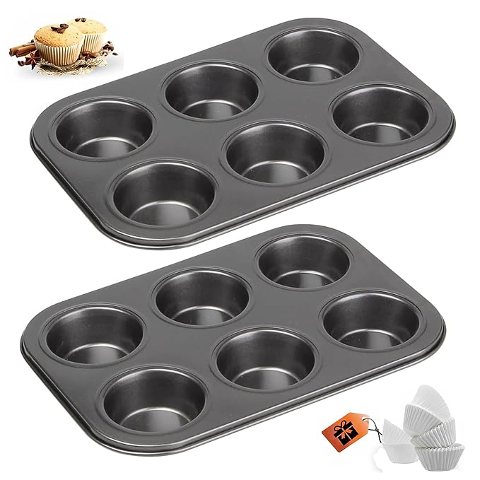 CURATED CART 2 Piece Cup Cake Mould for Baking – Muffin Tray with 100 Liners – Cake Mould, Bread Mould, Tart Mould, Cake Making Set Combo – OTG, Microwave, Dishwasher Safe, SGS Certified