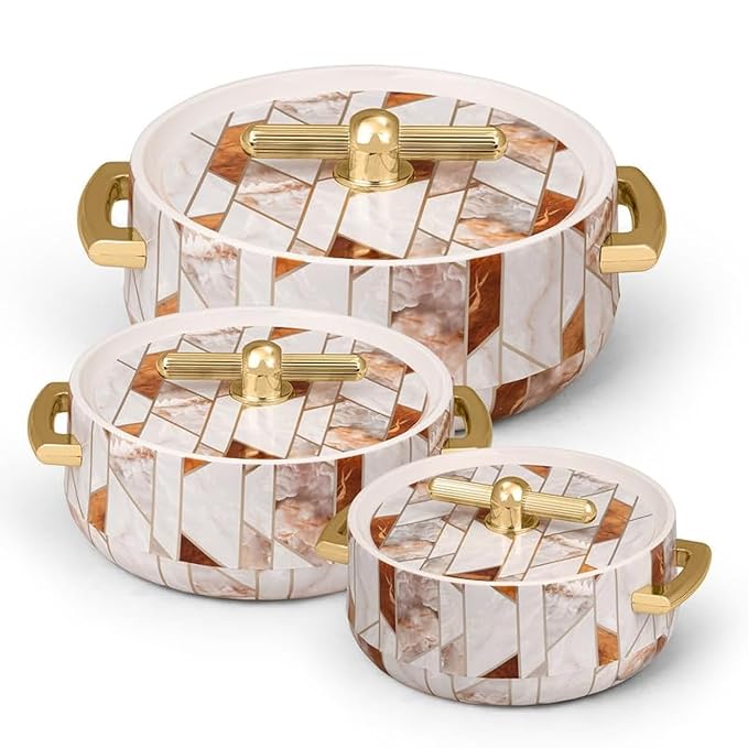 Selvel Elegance Royal Inner Steel Casserole Set of 3 (1700ml, 1200ml, 600ml) | Hot Case with P.U. Insulation | Hot box for Chapati, Roti, Biryani | Ceramica White | Keeps Food hot & Fresh for Long Hour