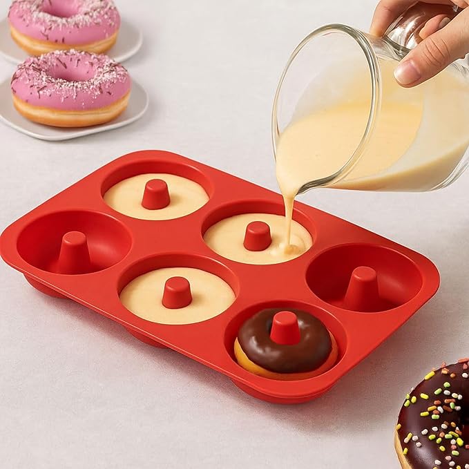 Frenchware Donut Shape Silicone Mould, Pack of 1-6 Cavity, Baking Tray for Fondant, Doughnuts, Muffin Cupcake Container, Microwave Safe, for Homemade DIY Biscuit, Chocolate, Muffins, Jelly
