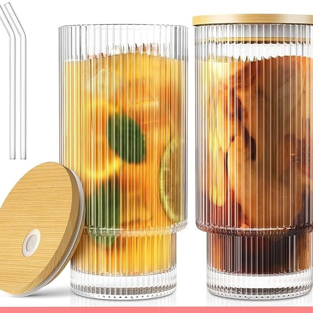 KiKiluxxa Round Wave Looked Glass Cola Mug Can Coffee Glass Sipper with Straw-530ml-Pack of 1- Milk Cup -Juice Green Tea Glass Tumbler with Straw (SZubelin lCan 1)