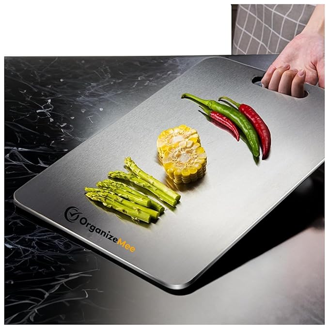 OrganizeMee Large Stainless Steel Cutting Board for Kitchen – Premium Vegetable and Fruit Cutter, (36 cm X 25 cm)