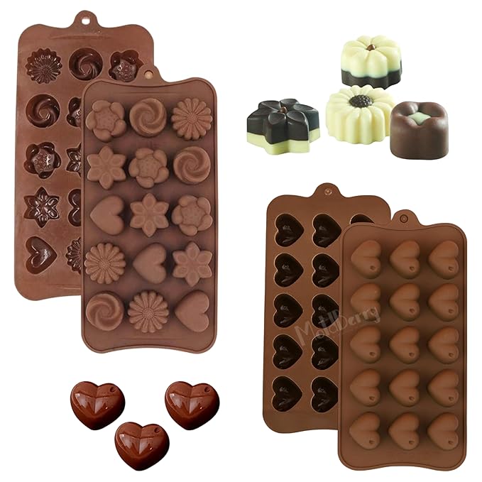 MoldBerry Silicone Chocolate Moulds Set of 2 | Heart & Flower Shape Candy Molds for Chocolate, Jelly, Gummies | Flexible, Non-Stick, Reusable Baking Trays | Mini Silicone Molds for DIY Sweets