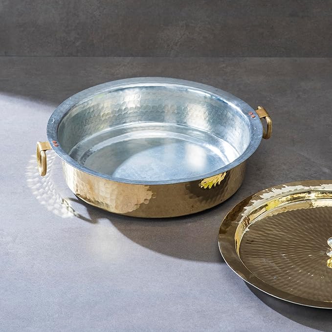 P-TAL Brass Lagan 6.5L, Tin Coated with Lid 100% Pure Brass Degchi for Cooking 6.5kg Biryani Handi Ptal Brass Kitchen Utensil (Free 30ml Copper & Brass Cleaning Solution)