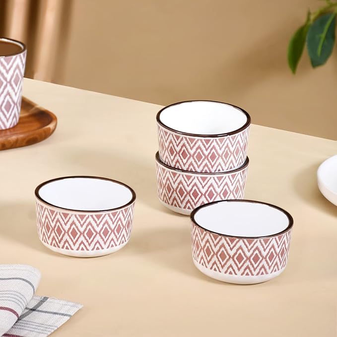 Nestasia Ceramic Bowl Set of 4 Diamond Pattern | Microwave & Dishwasher Safe Small Bowl for Snacks, Dal, Curry, Fruits, Salad, Maggi