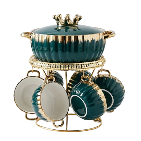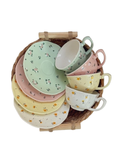 GOLDEN QUEEN’S Cup Saucer Set | Perfect for Hosting & for Tea/Coffee | Handcrafted in India | 24-Carat Gold Details | 6 Cups, 6 Saucers & 6 Spoons | 170 ml – Leafy Blush & Pink Charm