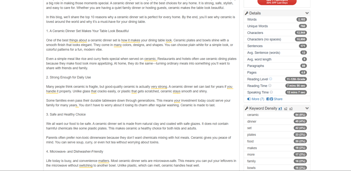 They say we eat with our eyes first. A ceramic dinner set makes your food look more delicious. The neutral tones of ceramic make colorful dishes like salads, curries, or pasta stand out. Even a plain sandwich looks special on a well-designed ceramic plate.