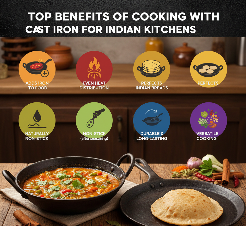 Indian food is often linked with rich gravies and fried items. But modern families prefer lighter, healthier meals. Cooking with cast iron cookware helps in this goal.