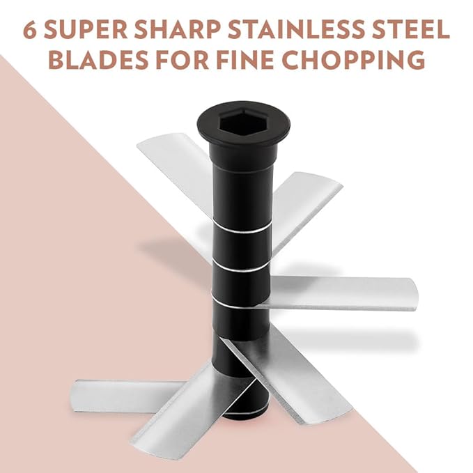 Consistent Results: Six sharp blades ensure uniform chopping every time.