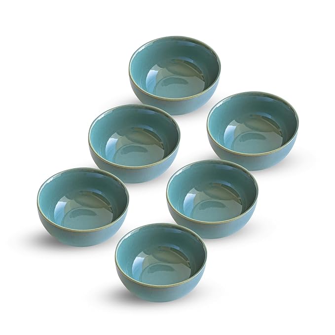 Claymistry Ceramic Serving Bowl | Set of 6 | 10cm * 10cm * 5cm | Glossy | Dishwasher, Oven & Microwave Safe (Golden Edge)